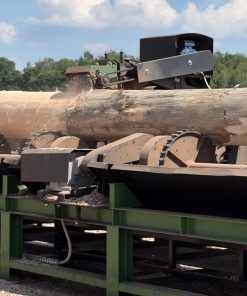 • Linia korująca z przesuwem rolotoku – kłoda porusza się wraz z rolotokiem, a głowica pozostaje w stałej pozycji, co ułatwia wyrzut kłody w kierunku załadunku.