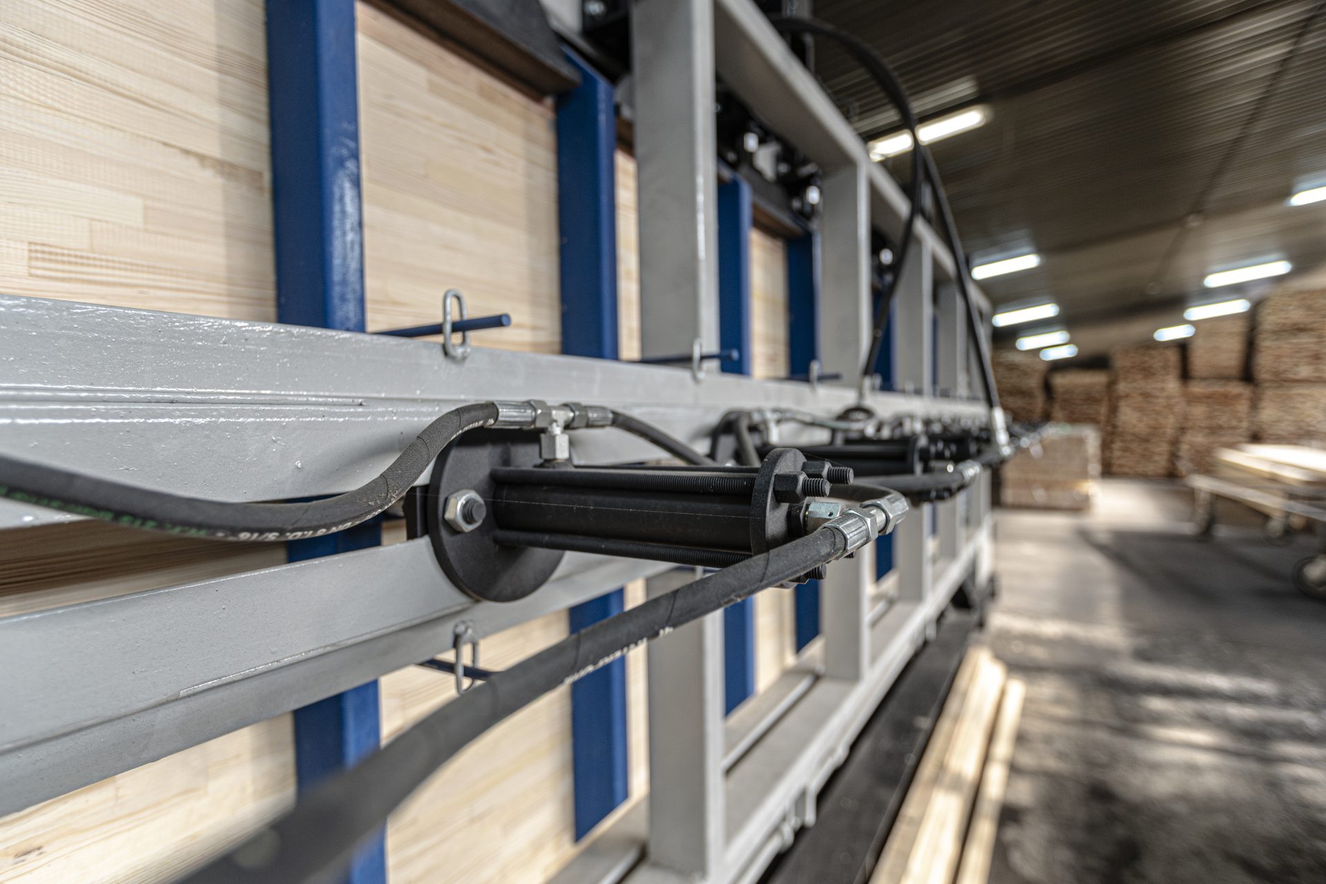 Oferowane przez nas prasy hydrauliczne do klejenia drewna doskonale sprawdzają się przy łączeniu drewna warstwowego, blatów, belek, kantówek okiennych i elementów konstrukcyjnych. Dzięki modułowej budowie długość powierzchni klejenia może być zwiększona nawet do 18 metrów. Prasa wyposażona jest w dwie pompy hydrauliczne – główną i pomocniczą – które utrzymują stałe ciśnienie w trakcie procesu klejenia, gwarantując najwyższą jakość połączenia.
