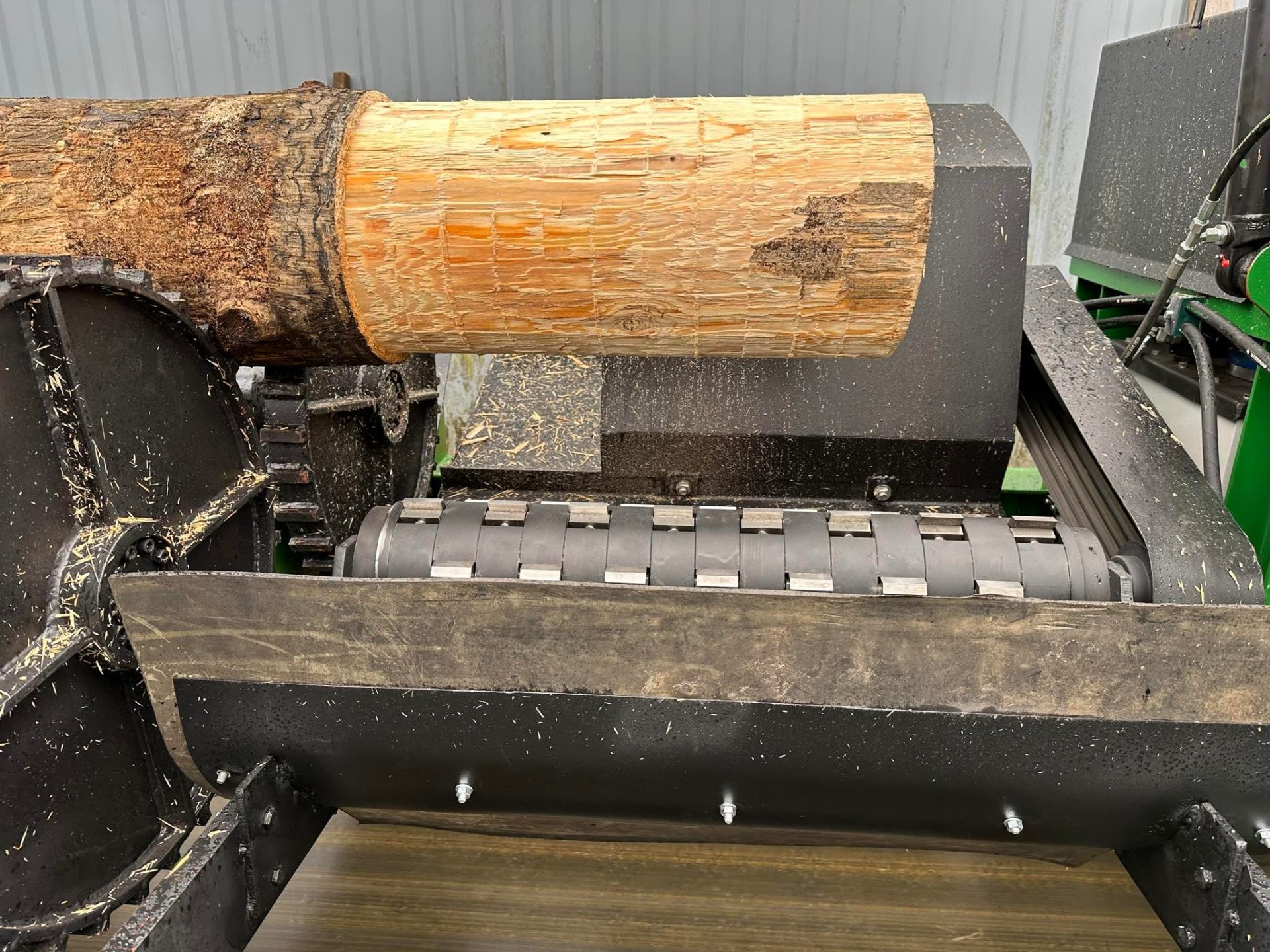 - Optymalizacja procesu cięcia – urządzenie usuwa nadmiar materiału z dolnej części kłody, umożliwiając uzyskanie jednolitej średnicy i łatwiejsze prowadzenie dalszej obróbki drewna.